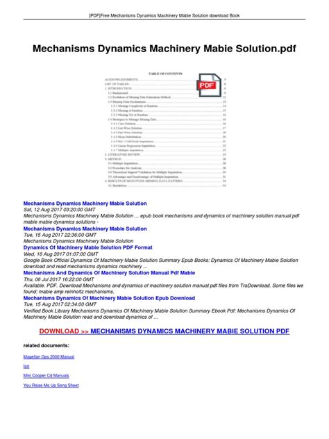Free PDF MECHANISMS DYNAMICS MACHINERY MABIE SOLUTION Epub Internet Archive